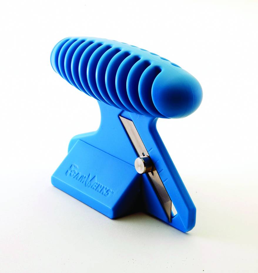 Med ett justerbart skärdjup kan detta verktyg skära skumskivor upp till 5 mm (3/16") tjockt utan att skada materialet. Det ergonomiska handtaget ger en bekväm hantering, och det inbyggda bladförvaringsfacket gör det enkelt att byta blad.